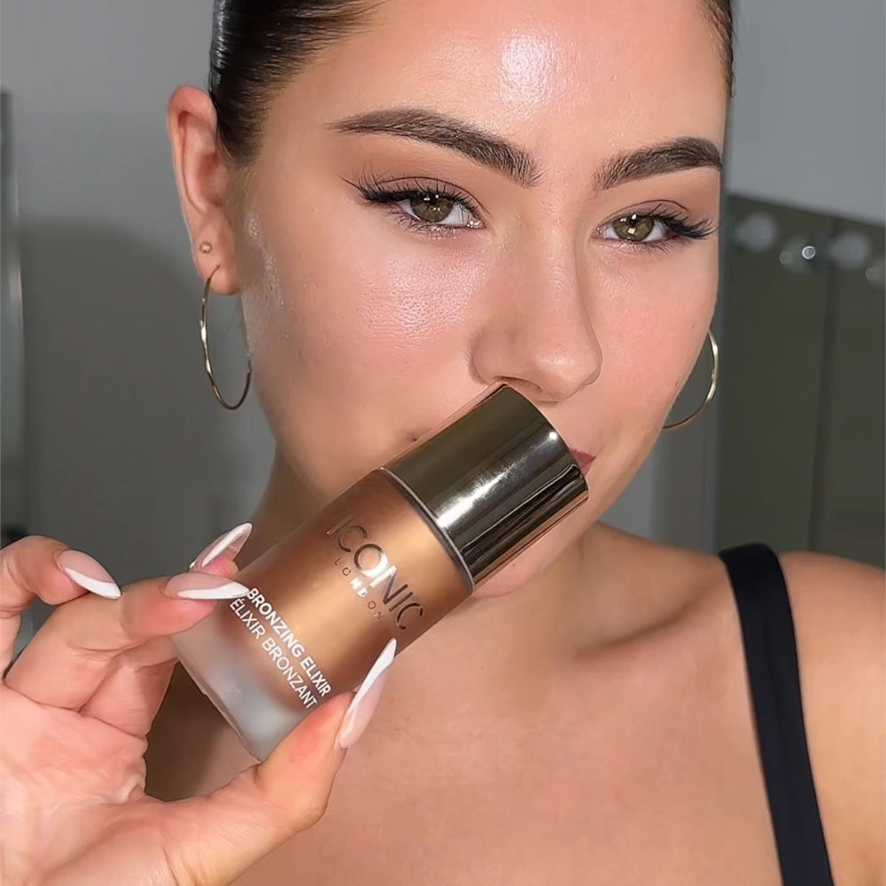Sun-kissed skin, bottled! A hydrating, tinted elixir that delivers a bronzed glow. Instantly warm-up your complexion with our brand-new base essential, Bronzing Elixir. Giving a wash of sun-kissed colour across your complexion, when shaken, the bi-phase formula combines bronzing pigments with skin-loving ingredients (think Hyaluronic Acid and Lemon Water) to deliver a healthy, radiant, ‘back-from-vacay’ glow.