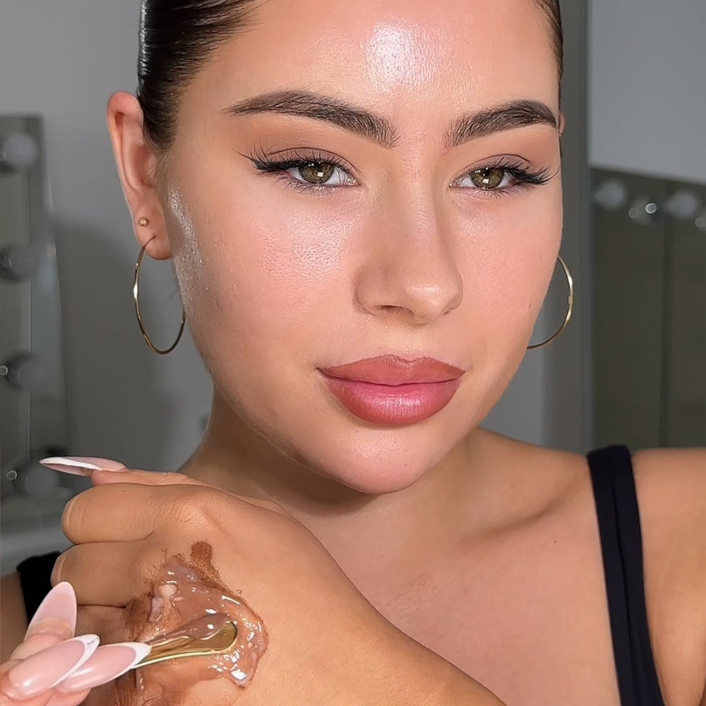 Pro tip: If it’s a deeper bronzed glow you’re after, dial it up by adding more Bronzing Elixir drops and layer with Radiance Booster or Super Smoother Blurring Skin Tint!
